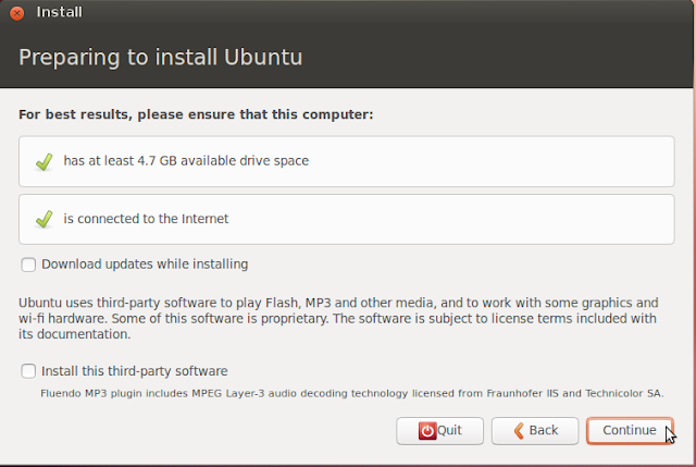 In the next screen, the options given are not necessary, but you can select them if you want to download updates from the internet and install some packages needed for running MP3, Flash, etc.