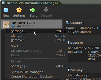 Once your virtual machine is successfully created, right click it in the VM VirtualBox Manager and select "Settings":